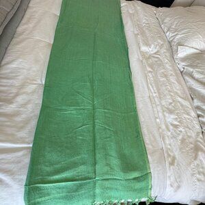 Calypso lightweight green sarong / wrap scarf, perfect for beach and resort wear. Soft, airy fabric with a relaxed drape that can be worn multiple ways — as a sarong, wrap skirt, scarf, or shoulder cover-up.
