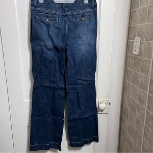 Stylish wide leg jeans. Dark blue hue. Perfect for casual wear.