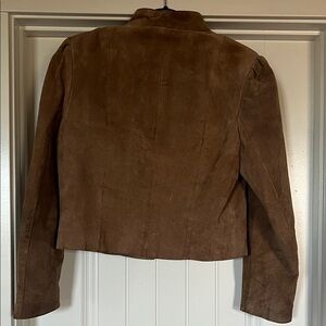 Keywords: vintage WinLit jacket, suede leather jacket, collarless leather jacket, 90s leather jacket, vintage suede blazer, genuine leather jacket women, classic minimalist leather, retro fashion outerwear