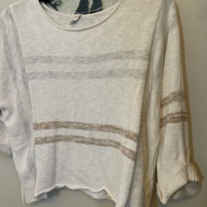 By Together White and Tan Striped Sweatshirt