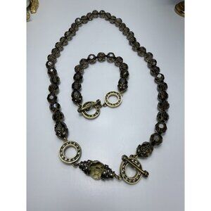 Inviting luxury jewelry lovers… This elegant vintage Heidi Daus set, “Let Me Count The Ways,” features a stunning 24" necklace paired with a matching adjustable bracelet (7"–9"). The design showcases smoky faceted beads, crystal-accented toggle clasps, and Heidi’s signature antique-gold finish—perfect for collectors and evening glamour.