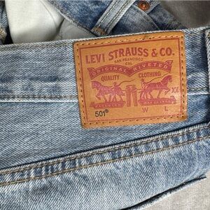 Levi’s 501 Cut Off Distressed Button Fly Waveline Denim Blue Jean Shorts