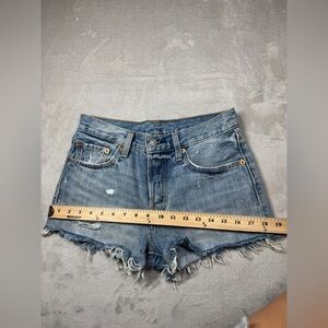 Levi’s 501 Cut Off Distressed Button Fly Waveline Denim Blue Jean Shorts 26