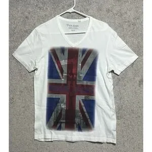 Vintage Guess Men's White V-Neck T-Shirt Size M