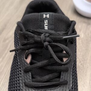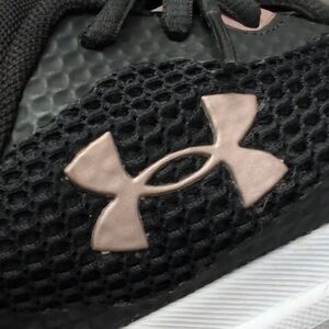 Sleek Under Armour shoes with a black mesh design and white soles. Light pink detailing Ideal for sports and everyday use. Gently worn.