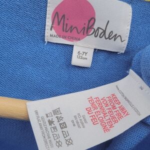 Mini Boden Girl's Solid Blue Button-up Ruffle Cardigan - size 6/7 - GUC (some stains on the sleeve - see pictures)