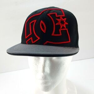 DC Shoes Flexfit Kids Skateboard Cap/Hat Fitted Size 6-6.5 Black/Grey Red Logo.