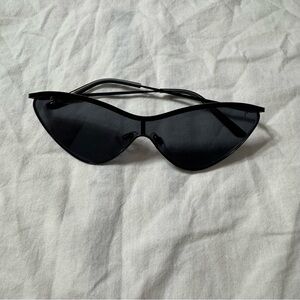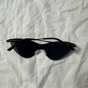 Stylish black cat-eye sunglasses by Vera Wang. Perfect for a modern look.