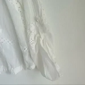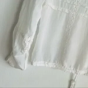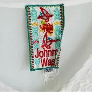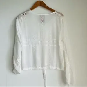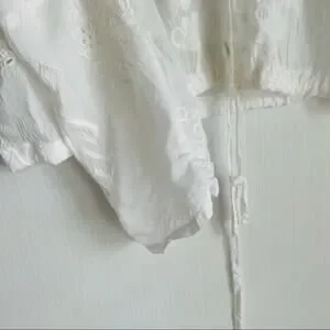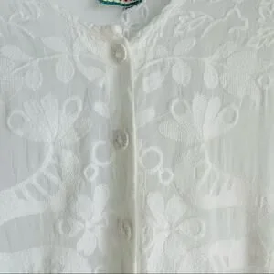 Johnny Was embroidered sheer lightweight button front top tie waist sz XS white