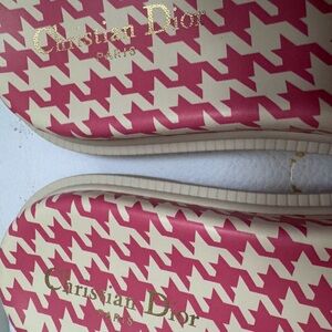 New Dior Pink Peony Houndstooth Patterned Women’s Comfy Sandals 38 US 8 NIB
