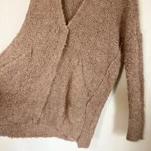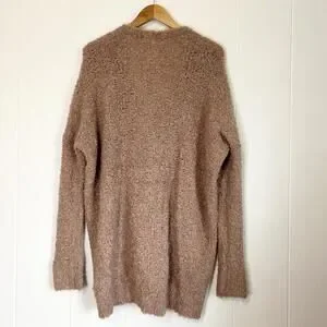 - Free People Pink Boucle Long Sleeve Button Up Oversized Cardigan Sweater Women's XS