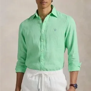 Ralph Lauren Men’s Classic Fit Solid Green Linen Button-Down Shirt size Medium