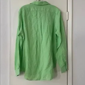 Men’s Ralph Lauren Classic Fit Solid Green Linen Button-Down Shirt with Long Sleeves in size Medium