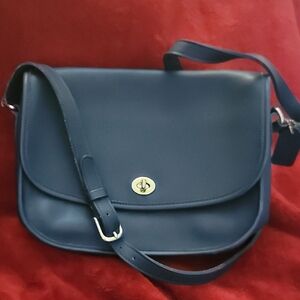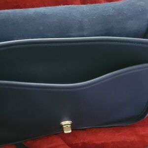 Elegant blue crossbody bag. Features a sleek design. Perfect for any occasion.