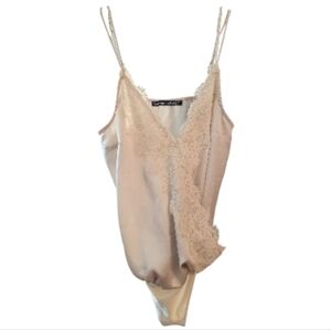 Abercrombie & Fitch Cream Satin Floral Lace V-Neck Sleeveless Bodysuit - Size XS