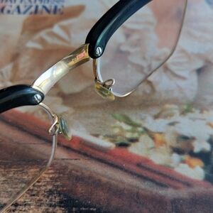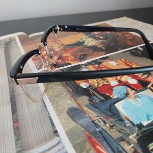 Chic eyeglasses with a black frame and gold accents. Perfect for a sophisticated look.