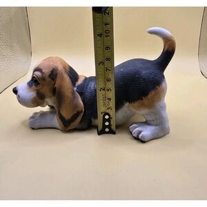 The VTG Enesco Purebred Pets Beagle by Kathy Wise figurine is a small, handmade porcelain collectible from 1984. This figurine depicts a beagle dog in white, brown, and black colors, capturing the charm of purebred pets in the 1980s. It is part of the Kathy Wise collection and is a licensed reproduction, making it a unique and nostalgic addition to any collection of decorative figurines. Measurements are in the pictures. Thank you for looking.