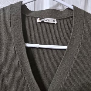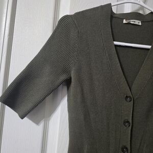 Marine Layer Bella Button Front Ribbed Olive Green Fitted Sweater Dress, Size XS