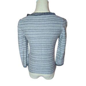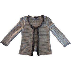 Banana Republic 3/4 sleeve pima cotton merino wool open striped cardigan, ribbon and bead trim
