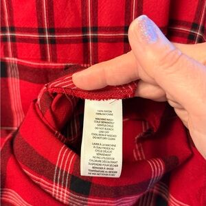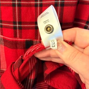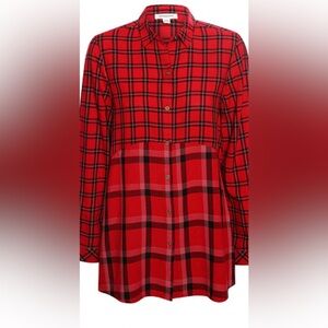 Chic plaid shirt with a classic button-up design. Ideal for everyday style. Adorable curved line at change in print.