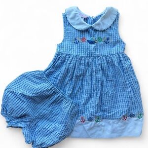 Samara Vintage Nautical Embroidered Blue Dress w Matching Bloomers Kid’s 4