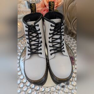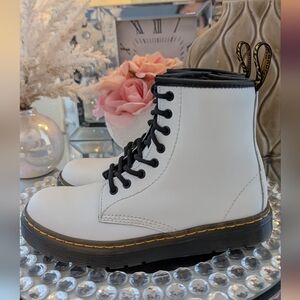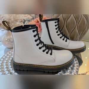 Dr. Martens White Leather Savala Lace Up Combat Boots Youth Size 2