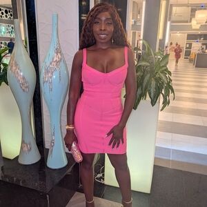 Stunning pink midi dress. Form-fitting design. Perfect for any occasion.