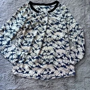 ⭐️⭐️⭐️DKNYC blue and cream abstract print blouse size Small