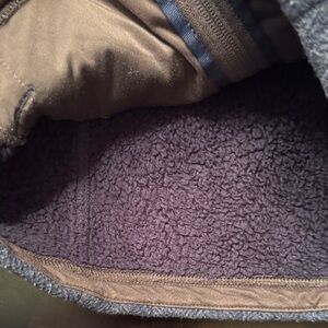 Warm REI hoodie with a heathered purple body. Features taupe accents and practical pockets. Perfect for everyday adventures.