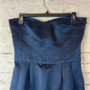 Diane von Furstenberg Size 4 Navy Blue Strapless Dress Cotton Silk Spandex Short