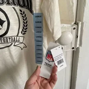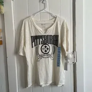 Cream NFL Team Apparel shirt with Pittsburgh Steelers design. Super lightweight and soft material. Brand new with tags.