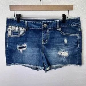 Maurices Cut off Denim Shorts Womens 9/10 Distresses Cute Stretch Summer 2090