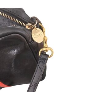 Clare V Midi Sac Black Leather Crossbody Bag Red Blue Stripe Camera Bag Brass