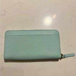 Chic Kate Spade wallet in aqua blue. Features zip closure. Ideal for daily use. Great condition!