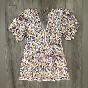 FARM RIO Off-White Greek Garden Ruffled Floral-Print Linen Blend Mini Dress XL