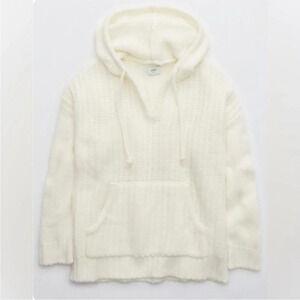 Aerie Street Cream Wool Blend Oversized Chunky Knit Sweater Hoodie S NWOT