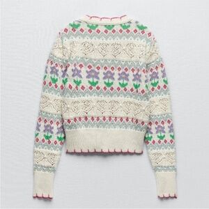 Zara Floral Jacquard Crochet Embroidered Cardigan bohemian 70's vibe feminine