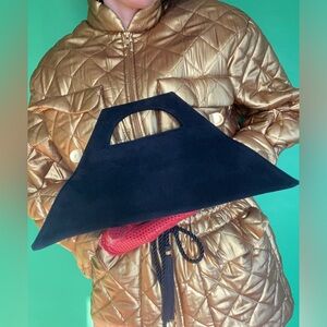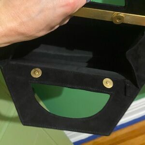 $625 Vintage 90s Donna Karan black Suede trapeze clutch bag couture collectible