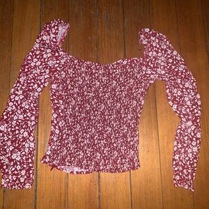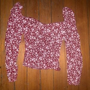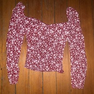 Stylish blouse with floral pattern. Features long sleeves and fitted design. Perfect for casual outings.