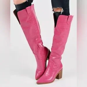 Journey Pink Therese Knee-High Croc-Embossed Boots size 11 wide calf