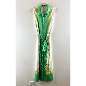 Current Air Anthropologie Sleeveless Button Up Shirt Dress Green White Small