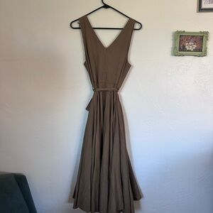 Details : Flared cut, Low-cut collar, Tie Belt, Side pockets, Buttons on front, Hemstitched back, Visible Stitching, Ankle length, Fluid