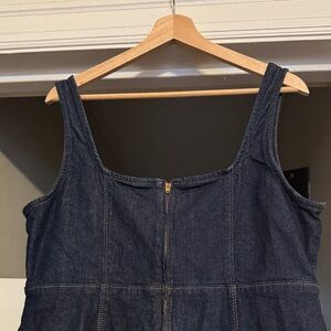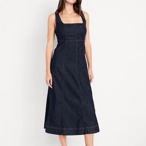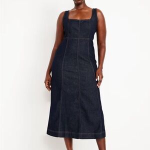 Old Navy Fit & Flare Sleeveless Square Neck Denim Midi Dress in Dark Rinse LARGE