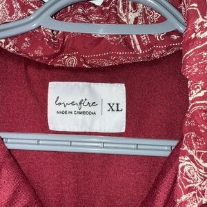 New with tags on.Stylish red puffer vest with intricate paisley pattern. Perfect for layering.