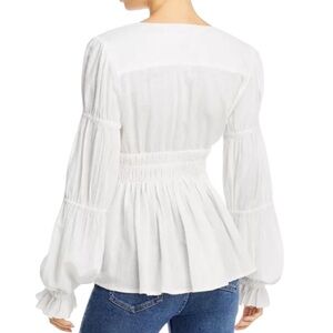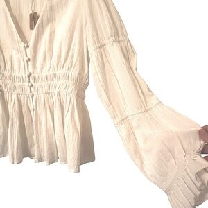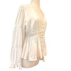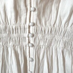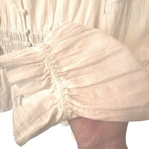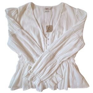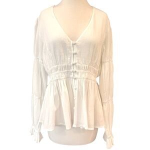 Faherty Colette Organic Cotton Blouse Button Up Smocked Ruffles White Sz L
