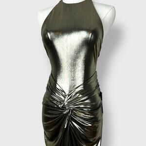$798 Retrofete Anida Dress Silver Lame Knotted Halter Designer Rare Small/Medium
