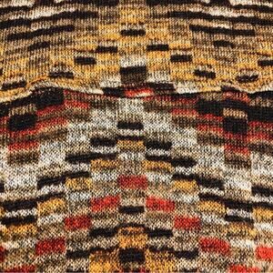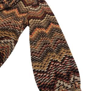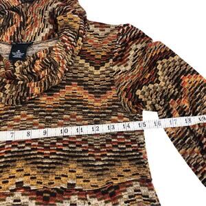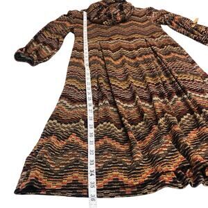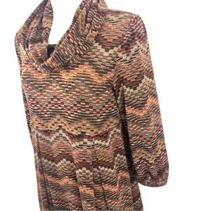 New Directions Orange Green Tan Chevron Print Knit Dress Long Sleeve Cowl Neck