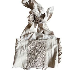 Criss Cross Halter Top Sleeveless Cotton Linen Blend Neutral Beige Size S