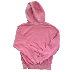Nike Hoodie, item has been used and worn a lil more than a handful of times. The item has a lot of life left and quality is nice, soft and will keep you warm. The item was originally white but I dyed it pink. The Nike logo is in pretty good condition lil to no peeling. There are some discoloration marks throughout the item as seen in last photos.