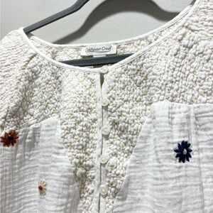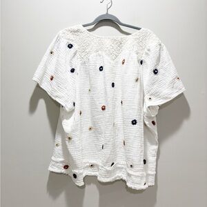 Coldwater Creek White Blouse with Floral Embroidery Cotton Gauze Relaxed Size 3X